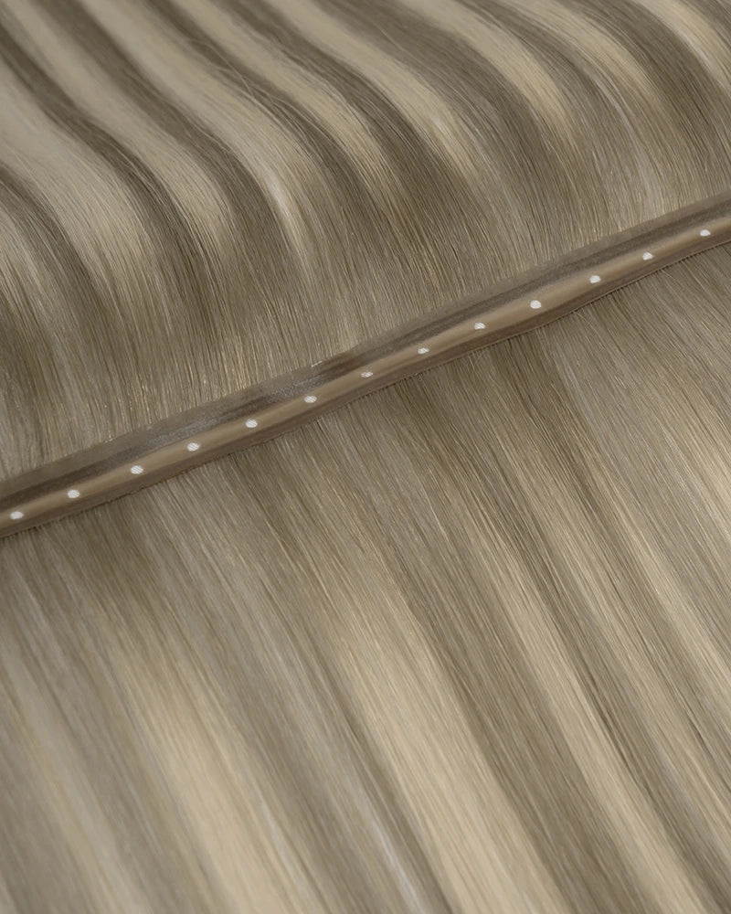 Crafted with a ultra-flat, flexible PU base, these semi-permanent extensions feature strategically placed butterfly holes. Each pair of holes works with a single microbead, allowing stylists to secure the weft firmly while evenly distributing weight — minimizing tension and maximizing comfort, even on fine or delicate hair.