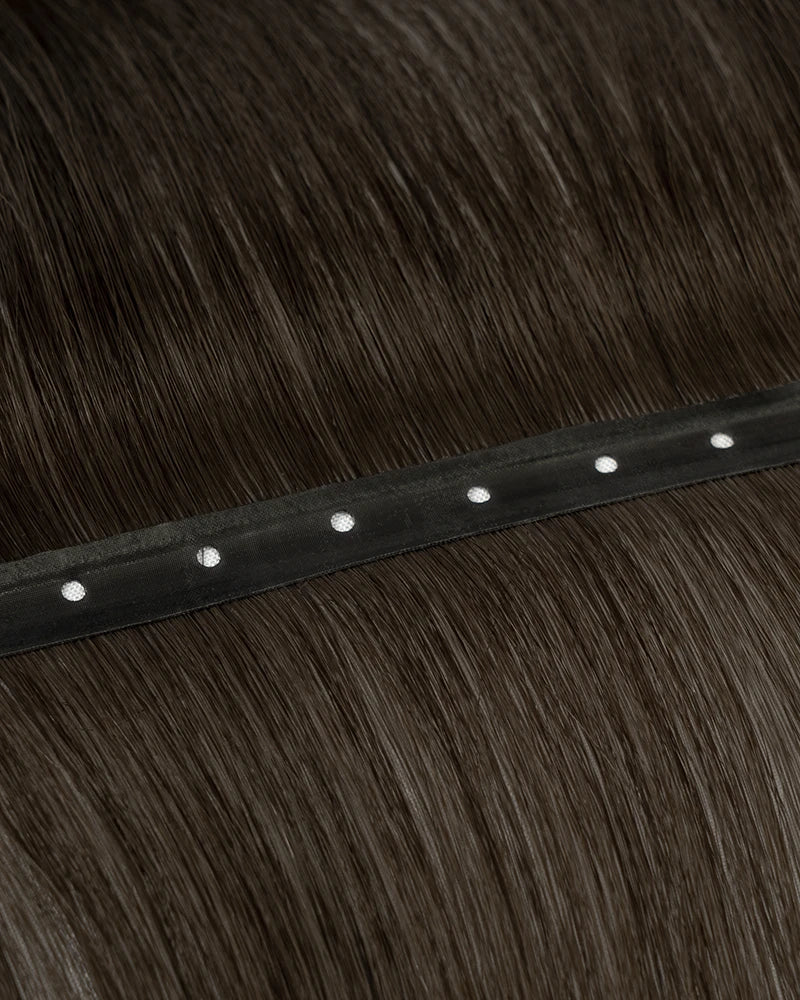 Crafted with a ultra-flat, flexible PU base, these semi-permanent extensions feature strategically placed butterfly holes. Each pair of holes works with a single microbead, allowing stylists to secure the weft firmly while evenly distributing weight — minimizing tension and maximizing comfort, even on fine or delicate hair.
