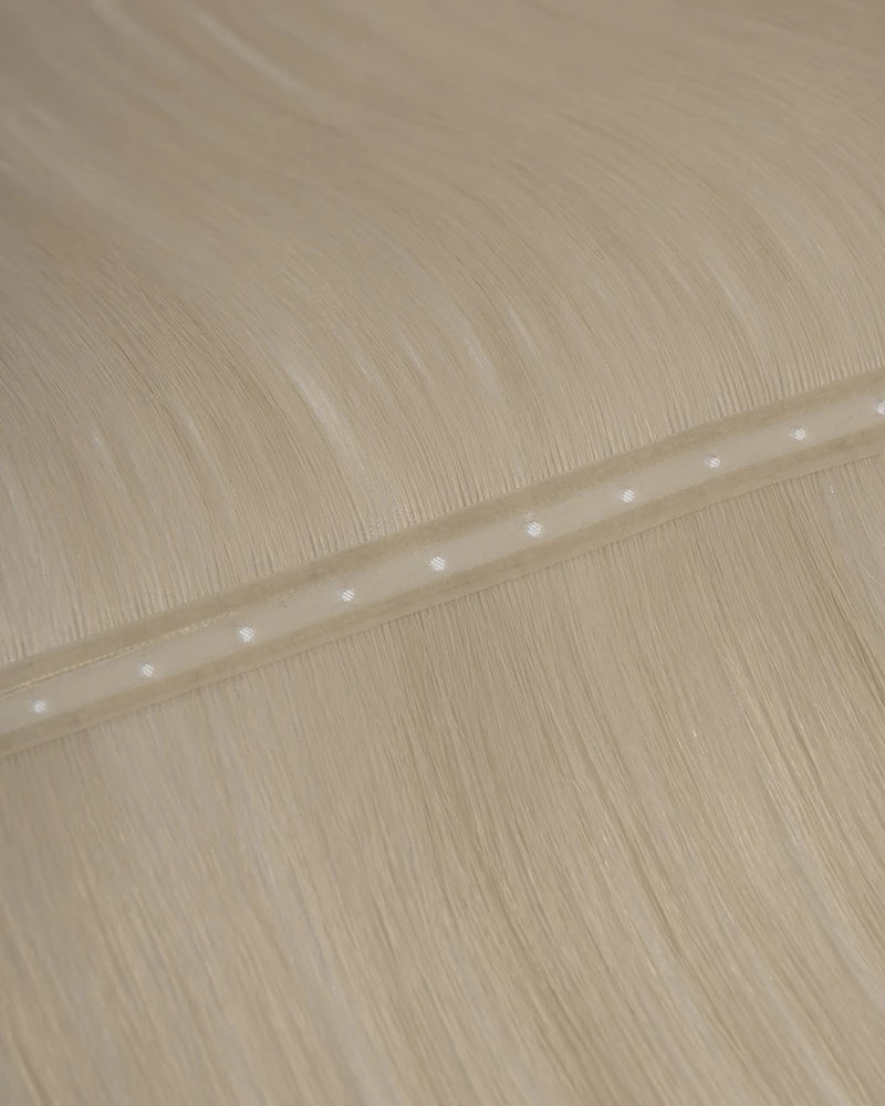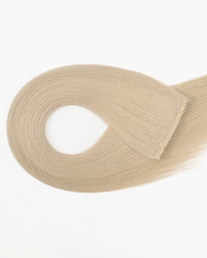 After installation, the weft is flipped and lays seamlessly against the scalp, concealing beads completely for a smooth, invisible finish.