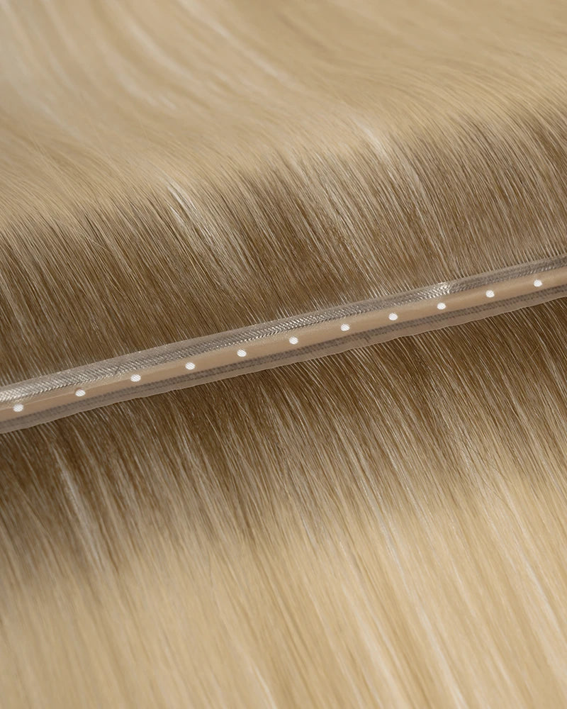 Crafted with a ultra-flat, flexible PU base, these semi-permanent extensions feature strategically placed butterfly holes. Each pair of holes works with a single microbead, allowing stylists to secure the weft firmly while evenly distributing weight — minimizing tension and maximizing comfort, even on fine or delicate hair.