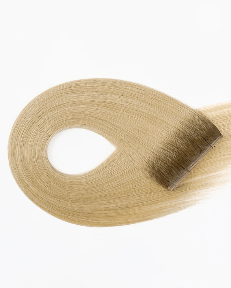 After installation, the weft is flipped and lays seamlessly against the scalp, concealing beads completely for a smooth, invisible finish.
